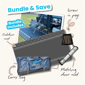 Looking for a complete setup? Get started with our bundles. Each bundle includes recycled mat, matching door mat, screw-in pegs and carry bag.