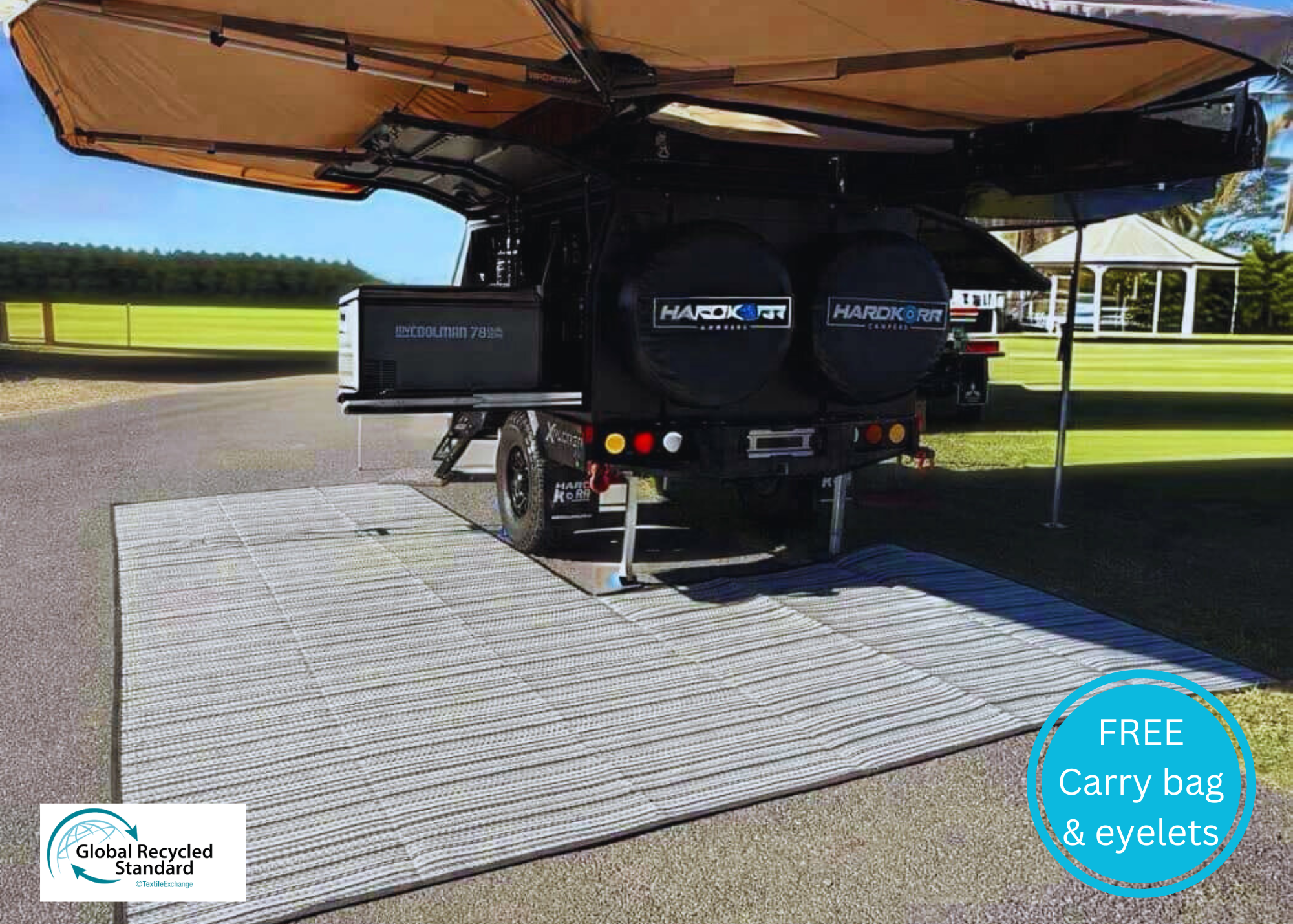 The Wanderer L Shape mat is built for travellers who like to stretch out, kick back, and make the most of their space. Designed to wrap neatly around your van, annex, or camp setup, this mat turns awkward corners into practical living areas.